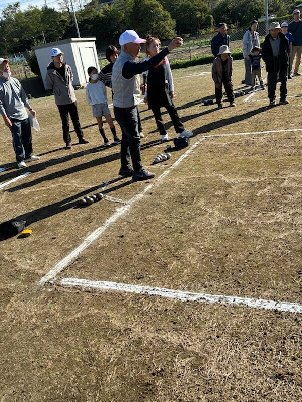 鉄のボールを目標目掛けて投げる競技です。