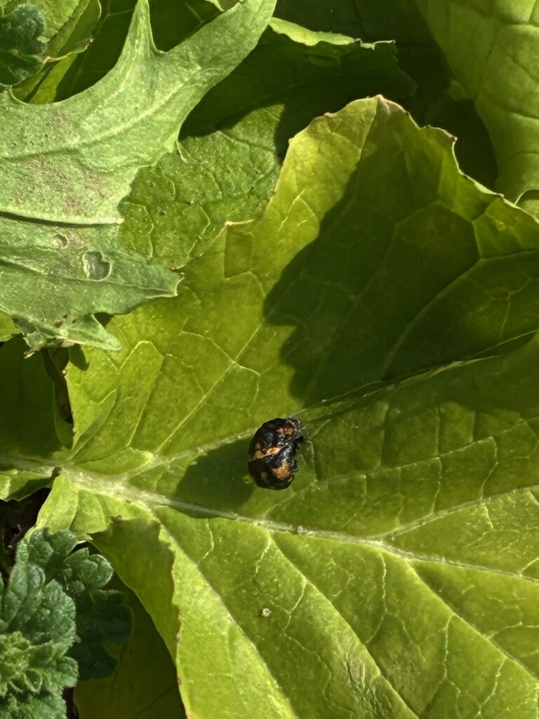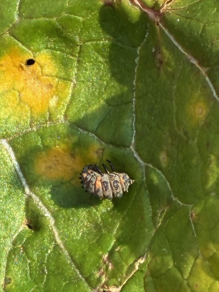 葉にてんとう虫のサナギが付いているので、