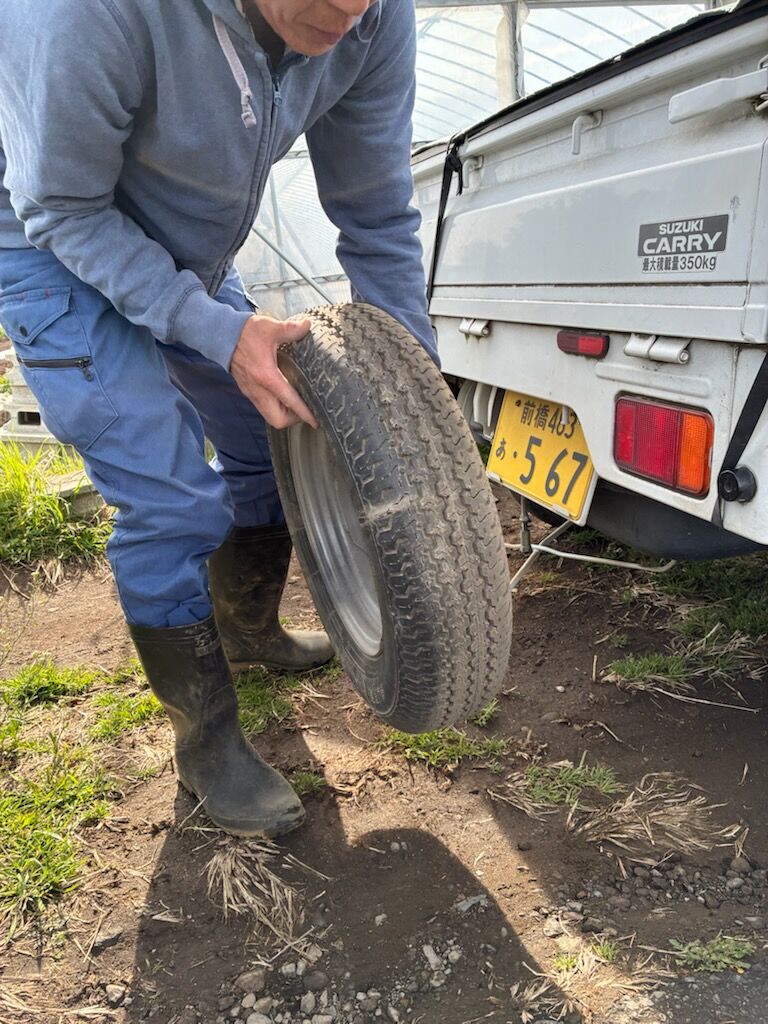 軽トラに備えられているスペアタイヤを取り付けようと思ったところ、