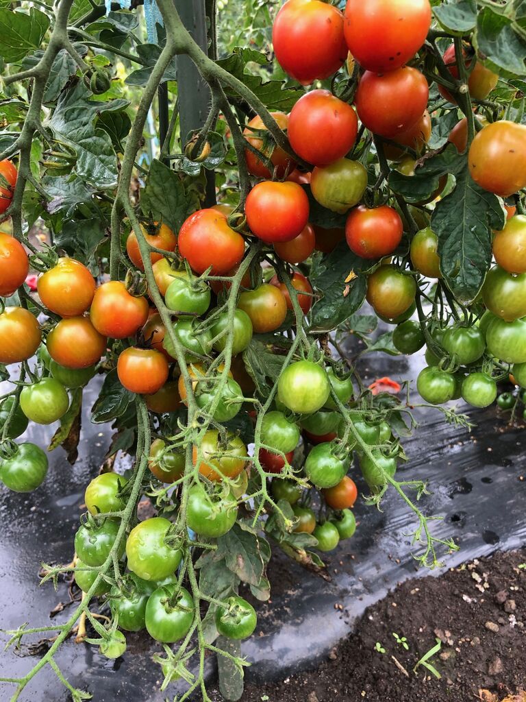 雨の日が続いています 2020年7月18日 スタッフブログ Star-Farm 昨日も雨が降っていたので、農作業はやりにくかったです。 今年の梅雨は雨合羽を着ない日はありません。 それでもピーマンなどの野菜は元気に成長しています。 鈴生りのトマトは綺麗ですね。 無農薬栽培の野菜は、身体に良いというよりも 美味しいのが嬉しいですね (^^♪